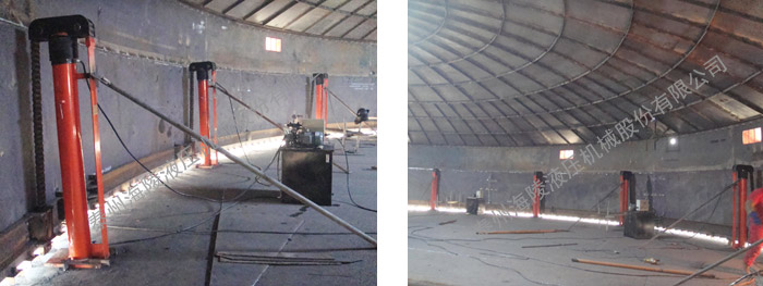 我公司生產(chǎn)制作的成套倒裝提升液壓設(shè)備即儲(chǔ)罐安裝設(shè)備,主要用于協(xié)助各種大型儲(chǔ)罐、氣柜、電廠脫硫塔等鋼結(jié)構(gòu)、大型重物的倒裝提升焊接安裝。